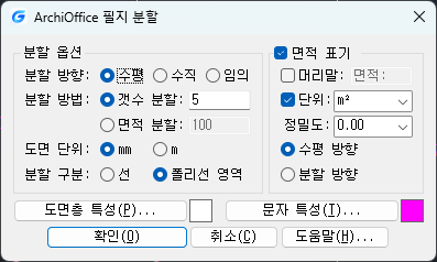 ○ 면적이 정확히 분할 : 모두 자동 계산 + 분할선 자동 생성으로 한 번에 해결